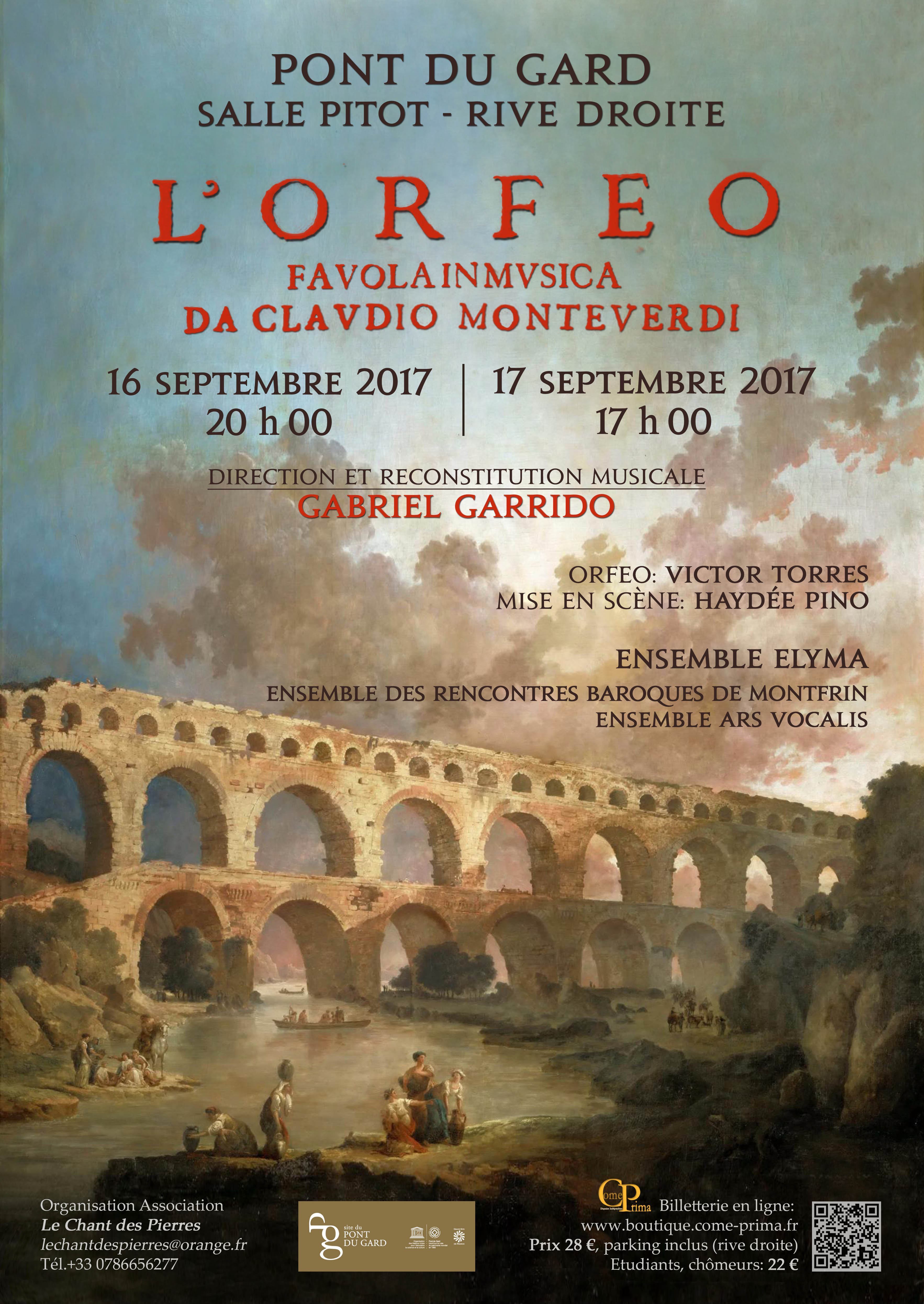 Pour couronner cette année anniversaire nous avons voulu mettre sur pied un projetd’envergure. Une mise en scène de l’Orfeo aura donc lieu à la salle Pitot du Pont duGard les 16 et 17 septembre. Une création qui réunira, autour du célèbre barytonVíctor Torres, une sélection d’artistes des Rencontres baroques de Montfrin de cesdernières années et des musiciens de l’Ensemble Elyma.