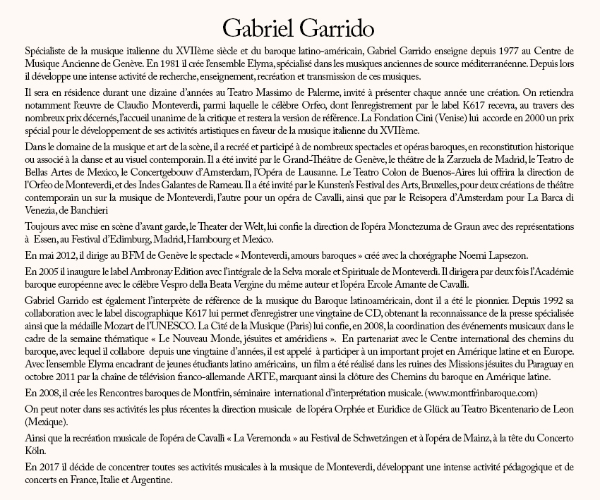 Pour illustrer cela, nous avons choisi deux opéras de Cour emblématiques, La Dafne de Marco da Gagliano et le célèbre Orfeo de Claudio Monteverdi, où Nymphes et Bergers chantent et dansent à tour de rôle.